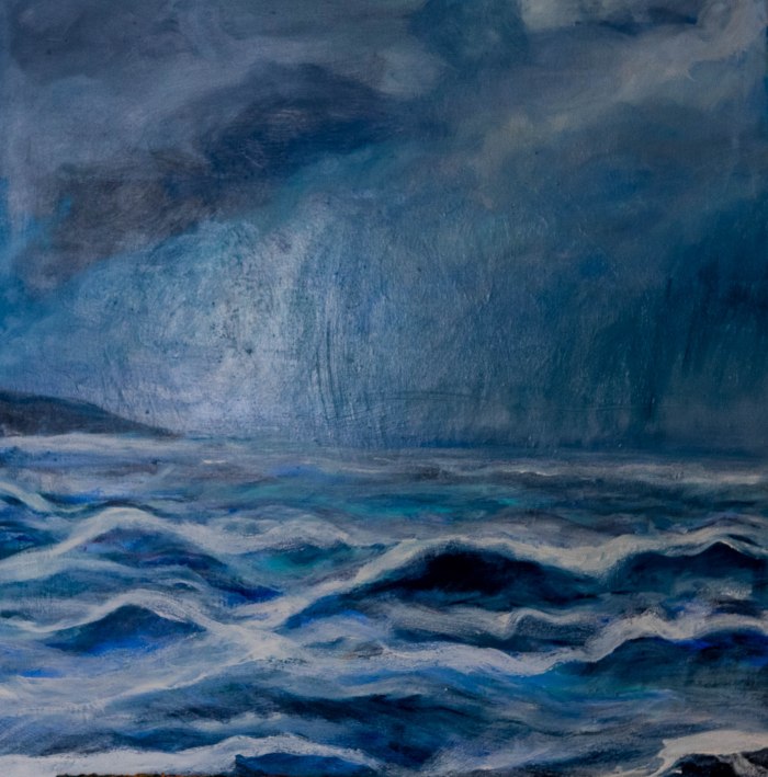 Il vento di libeccio e onde al largo che s’infrangono, aria di tempesta, di cambiamento repentino, scompare l’ orizzonte.